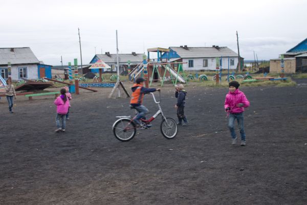 Заходим в пос. Катырык. Замечаем, сколько детей разного возраста там. Они везде!