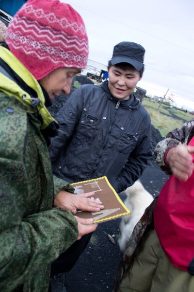 А один молодой человек подарил нам замороженную рыбу и поделку школьников. Зовут его Владимир Владимирович Битту. Это местный библиотекарь.