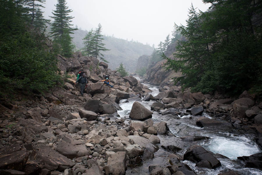 Нога у Вадима не улучшилась. Идти ему тяжело, особенно по крупным камням. Весь день топаем бодрым шагом до перевала. Во время бродов постоянно ловлю себя на мысли, что теория постановки весла в качестве опоры в воде не всегда сработает на автомате. Очень часто брожу, опираясь веслом ниже по течению. Потом понял: срабатывает рефлекс правого гребца — весло привычнее держать справа и, соответственно, опираться на него в такой же позиции.