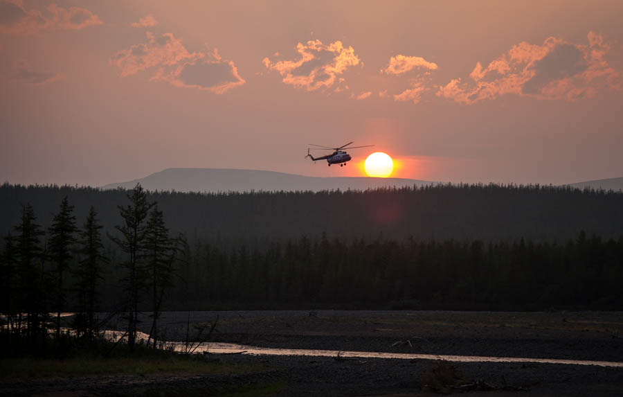 И тут ситуация начала быстро развиваться и в корне поменяла дальнейшие планы. В небе показался вертолет, который заходил на посадку как раз в нашем районе. Нам даже сначала показалось, что вертушка заметила нас и поэтому заходит на посадку.