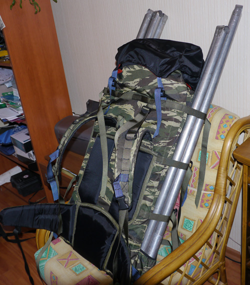Поскольку мой старый рюкзак уже потрепался, а магазинные рюкзаки весом 3 и более кг меня не устраивали — пришлось сесть за машинку и сшить самому. Рюкзак объемом около 100л получился весом 1.5кг вместе с каркасом из листа поликарбоната. Надо отметить что он прошел испытание на 100%- идти было легко и удобно. Каркасный лист полностью себя оправдал. Подвесная система получилась хорошая и удобная.