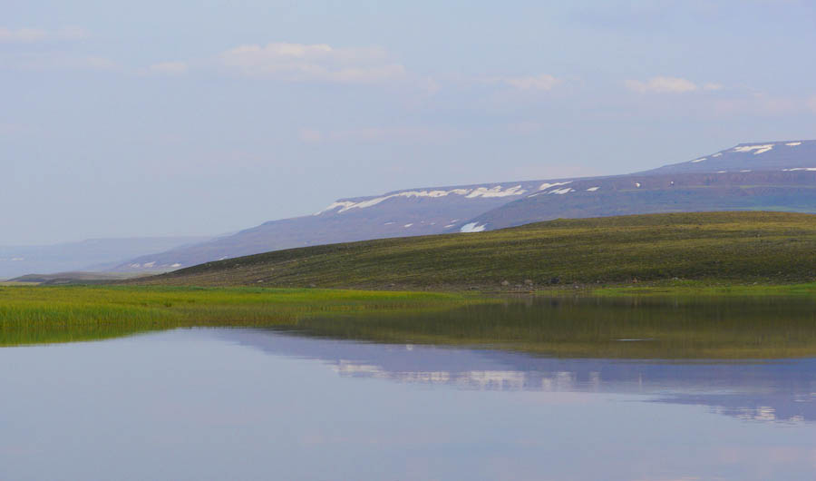 Темп ходок — 50 минут идем, 10 — отдыхаем. В районе 23.00 выходим в долину р. Геологическая и находим среди болот холмик для ночевки. Комары зверствуют. Выпиваем по рюмочке норильской водочки и падаем спать.