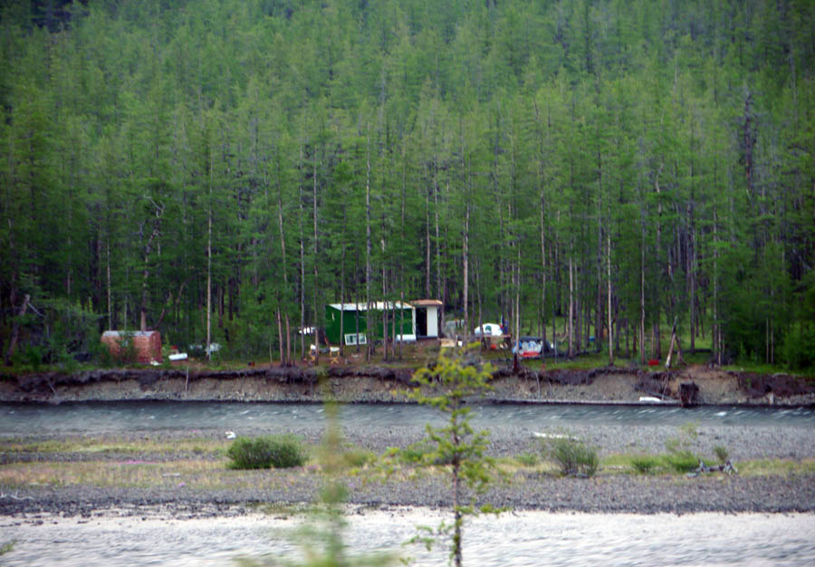 В районе 1 ночи подошли к Аяну. В 500 метрах ниже по течению реки Аян стоит новая база на ПБ. Ее раньше здесь не было. Кто это — мы не знаем. Люди спят или отсутствуют. Движения не видно.