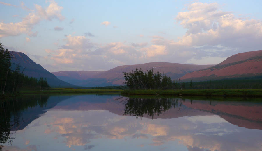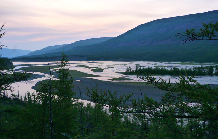 Солнце садилось, когда мы подошли к притоку Делочи (откуда завтра собирались уходить в переход на Курейку).