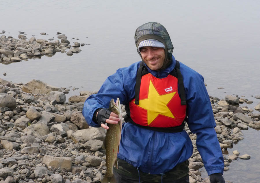 В середине дня наловили гольца. Плотно пообедали. Погода нам благоволит. Тепло, нет сильного встречного ветра.