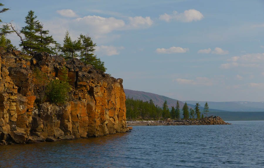 По берегам иногда встречаются разрушенные останки стойбищ. Течение медленное. Много перекатов, которые надо проводить. Уровень воды малый. В одном из омутов поймали десяток крупных хариусов. Еда есть!