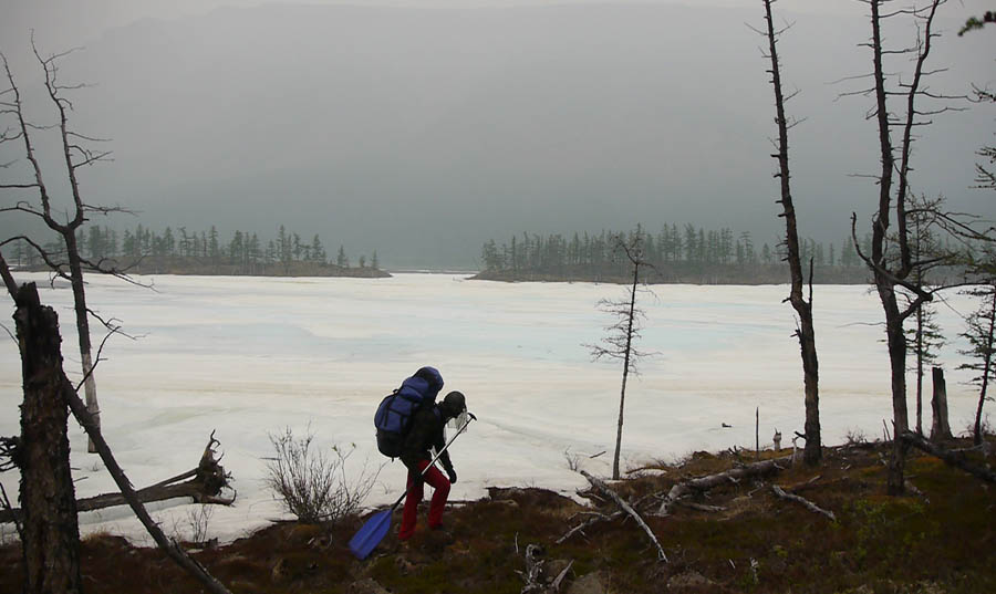 Самолет Москва-Норильск задержали на 3 часа. Прилетели в Норильск, закупили недостающие продукты и сразу поехали на базу МЧС. Отметились, оставили номера страховок и контакты. Упаковали продукты. Перепаковались для пешки. Выходной вес на мчс-ских весах получился 30 кг. + весло в руках + рама (4 продолины) посменно. Начальник МЧС, давний знакомый Вадима, любезно подбросил нас до причала, где нас уже ждали две моторки. Заброска в дальний конец оз. Лама прошла достаточно быстро. Можно было бы еще быстрее, если бы не ручной бензонасос на одной из моторок.