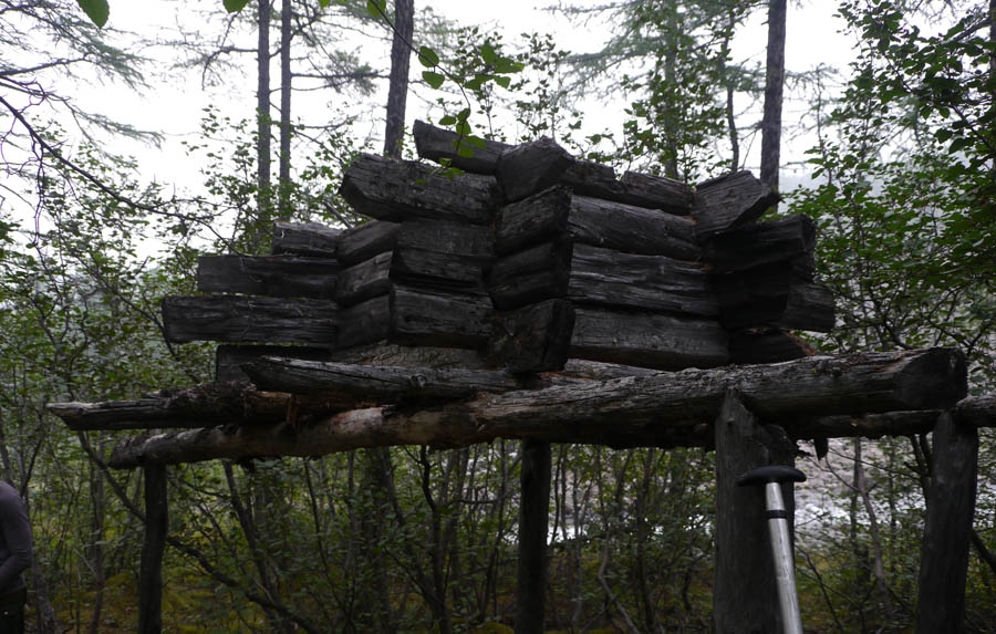 После обеда долина Капчуга сузилась и стала маленькой горной речушкой. В обном месте встретили старый лабаз. Раньше здесь проходил «Путь»