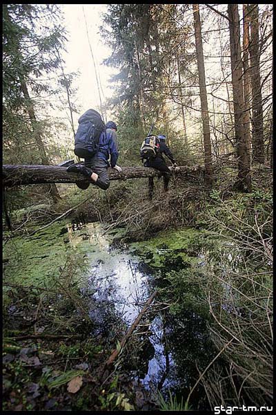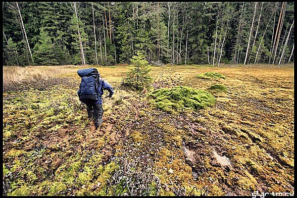 Когда мы пришли на настоящий КП, то на указанном месте мы встретили пошаговый(!!!) КП дистанции А мы всерьез засомневались в своем психическом здоровье. И только карта дистанции А убедила нас, что мы здоровы и вышли куда надо. Блин. Второй шаг КП, это ка-то слишком!! Хотя для дистанции Б ничего не слишком…Итак следующий шаг — в болото! Вперед на юг! КП взяли без особых проблем, но проблемы обрели позже, когда решили не обходить далеко, а проломилься через лес напрямик вдоль берега озера. Там было второе глубокое купание — мне там было чуть выше пупка и главным для меня было сохранить сухим флис. Вроде преуспел, но время — ближе к утру, мокрые по пояс… стало холодно..нет ХОЛОДНО. Впервые в жизни я подумал не о том как мне фигово сейчас, а о том, чем мне это грозит в будущем.