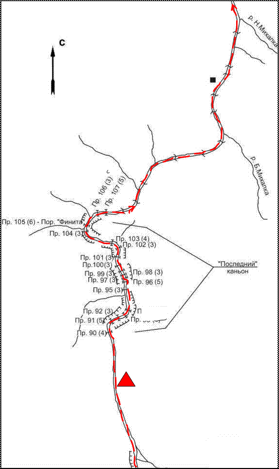 Схема 14. Каньон «Чертог». Прорыв «Ахмед» (препятствия 47 – 49).