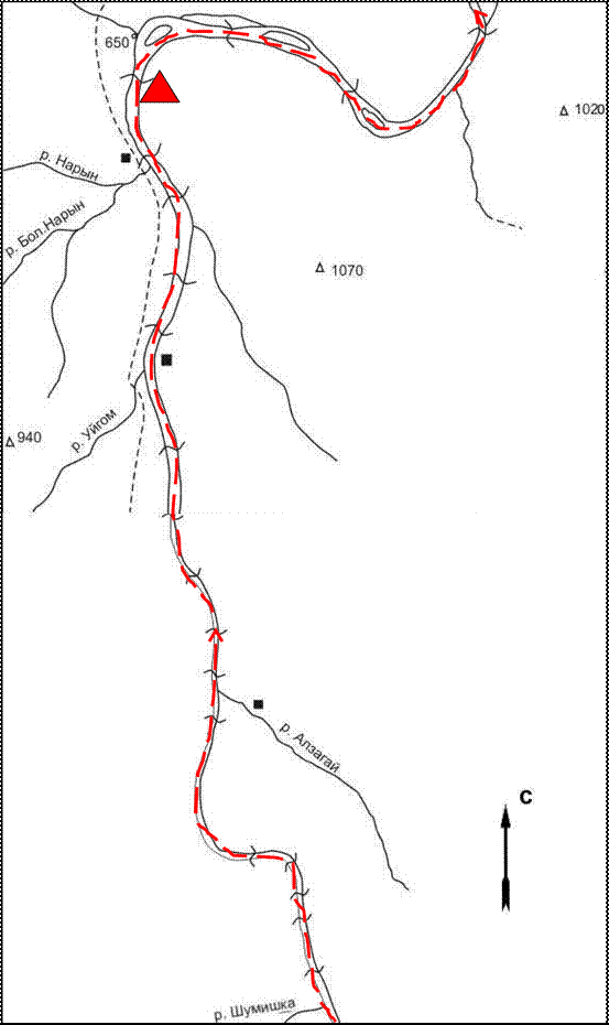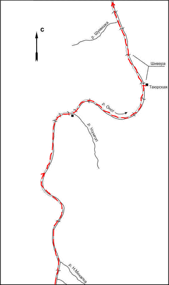 Схема 6. Схема маршрута. Р. Онот (1:50 000).
