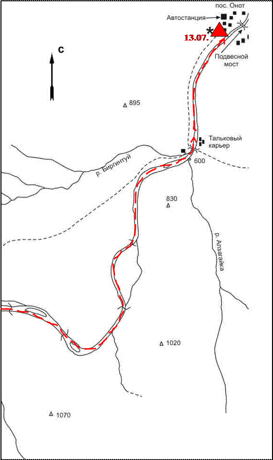 Схема 7. Схема маршрута. Р. Онот (1:50 000).