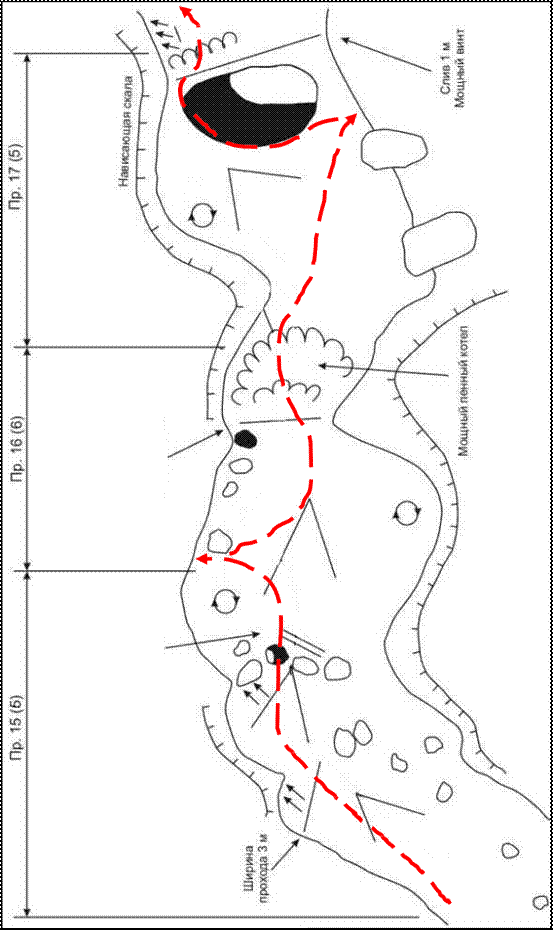 разведка препятствий по берегу с наметкой мест чалки и страховки; тщательная разведка наиболее сложных препятствий.