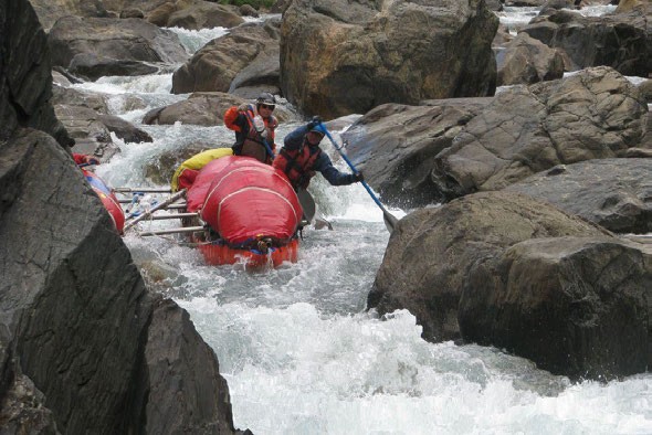 Для сплава команда использовала катамараны с титановыми рамами.