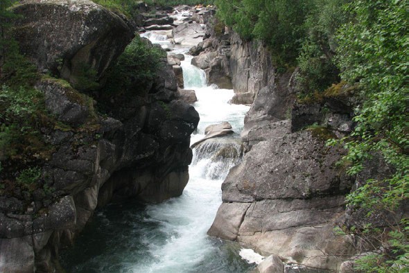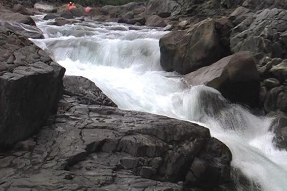 После затяжного прямого участка Онот поворачивает направо в скальный коридор. Начинается 4,5 км каскад