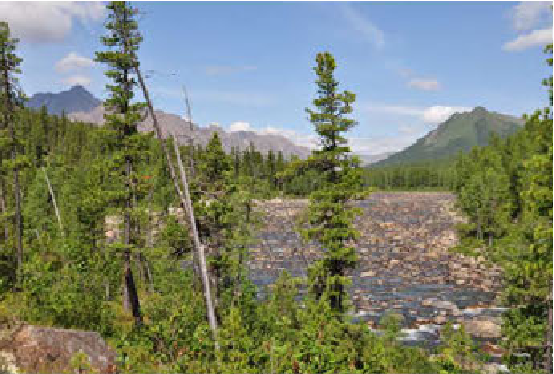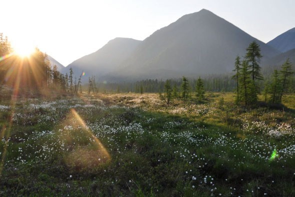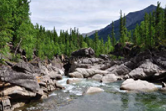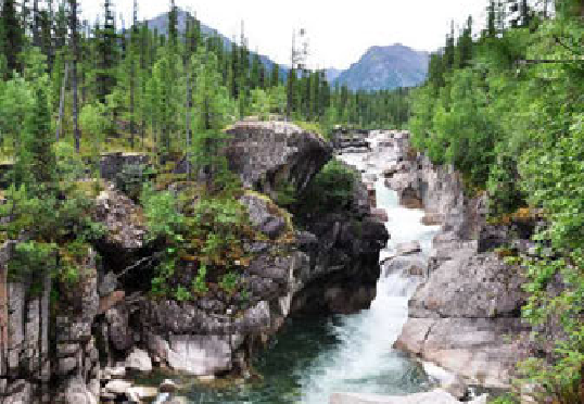 Но вот, мы, наконец, вырвались на открытую воду. Река стала напоминать равнинную небольшую речку с быстрым течением, извилистую, с отмелями на поворотах и глубокими омутами. Сразу появилась возможность обратить внимание на природу – то, ради чего мы забрались в такую глушь. Конечно, это надо видеть: цветущий багульник, кедры, устремленные в небо — все, как в старой доброй песне. Чистейшая вода, абсолютно прозрачная и очень приятная на вкус. Первые дни, когда приходилось по 8 часов заниматься тяжёлым неблагодарным трудом – перетаскиванием на руках загруженного катамарана, при жаре под 30оС, я с удовольствием выпивал по 5-6 литров этой воды, благо, она не требовала кипячения или фильтрации, достаточно было опустить бутылку в воду и набрать жидкости.
