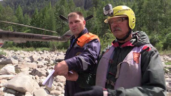 На последнем пороге маршрута «Финита» над нами пролетел вертолёт. Шутки по поводу того, что это за нами оказались правдой, после порога, за поворотом на большой галечной отмели, сидела винтокрылая птица и вокруг нее суетились люди в форме МЧС. Наши любимые жены всегда очень беспокоятся, когда мы на маршруте, и не всегда адекватно реагируют на всякого рода задержки, вот и возникло обращение в МЧС о пропавшей группе. Странно, что никто не стал смотреть маршрутные книжки и контрольные сроки, которые мы не превысили. Изначально был запасным маршрут сплава только по Оноту. Телевидение раструбило новость на всю страну и даже ближнее зарубежье.