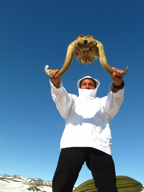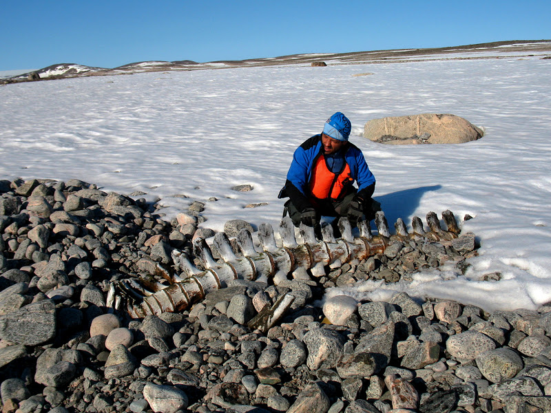 Чем Лёша хорош, так это тем, что любая твоя абсурдная идея не кажется ему абсурдной, потому что его собственные идеи куда абсурднее. Например, он решился вывезти с Восточного побережья Гренландии череп овцебыка с рогами, весом килограмм 12, а так же позвонок кита, тоже немаленький. Зная, что у нас в самолётах реальный перевес! Ну мы тоже тогда решили все по позвонку домой привезти, только выбрали поменьше, благо, что скелетов нарвалов в прибрежных камнях валялось достаточно.