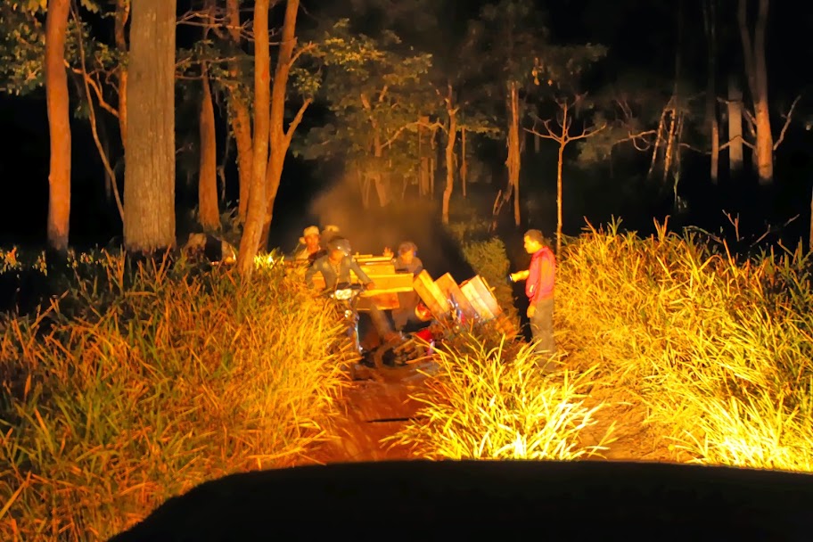 Пограничники, милиция, природоохранные службы пытаются ограничить вывоз. Во время заброски в верховья нашей реки мы встретим их представителей, а так же гонцов, нагруженных контрабандным сырьем. Дорог в джунглях не так много, а мимо дорог прямо по джунглям не проедешь. Так что встречи браконьеров с властями неминуемы, но и те и эти знают правила игры. В стране существует коррупция, и в этом смысле Камбоджа не лучше и не хуже других стран. Видимо, платится взятка, и это первая цена, уплаченная за драгоценное красное дерево. Дальше тик переходит у перекупщиков из рук в руки, а цена его будет только расти.