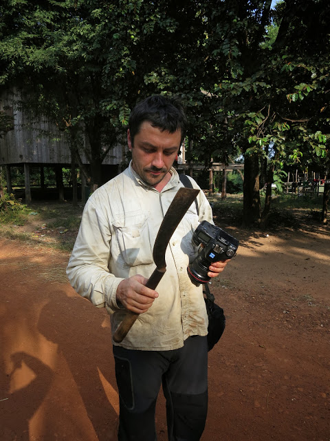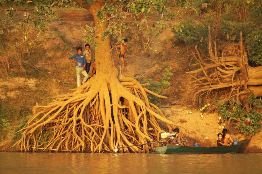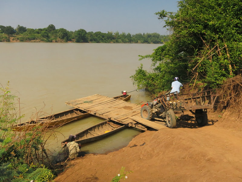 Наконец, мы едем. Сегодняшняя наша цель — поселок Краче. Kratieh. Мы остановимся на ночевку у друзей Олега. Это настоящая кхмерская семья. Глава семьи умер 4 года назад, но его дети — старший Арот, младший Анет, и его дочь Алан, выросшие на глазах Олега, вдова, унаследовавшая дело мужа, продолжают дружбу с ним. Интересно, что дело, которым зарабатывает семья, абсолютно противоречит его мировоззрению биолога, натуралиста. Они — браконьеры. Добывают красное дерево — тик. Мы видели подобные делянки — надо сказать, что добывают его кхмеры довольно варварски.