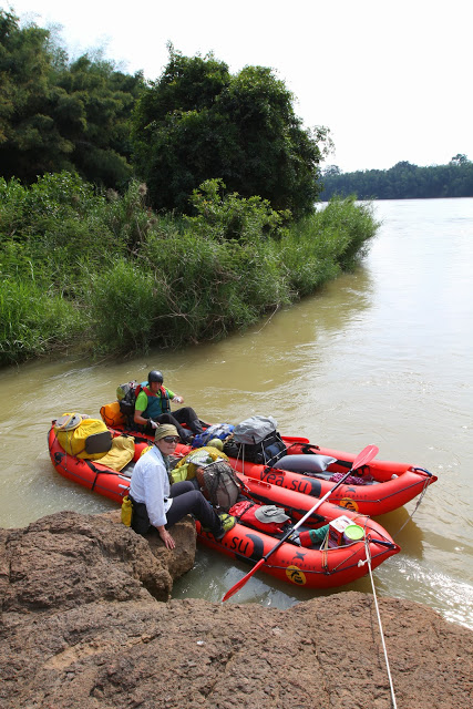 Один из них принес весть, что в верховьях есть огромный водопад, где лодки не проходят, и он опасен, а другой — что есть на реке место, где со скальной стены падает река, и место это не обходится, а спускаться придется с помощью веревок и скальных крючьев. Сведения противоречили снимкам, но всё же мы слегка подсобрались, безответственность получила отставку, а в списке обязательного снаряжения прописались спасы и каски для всех.