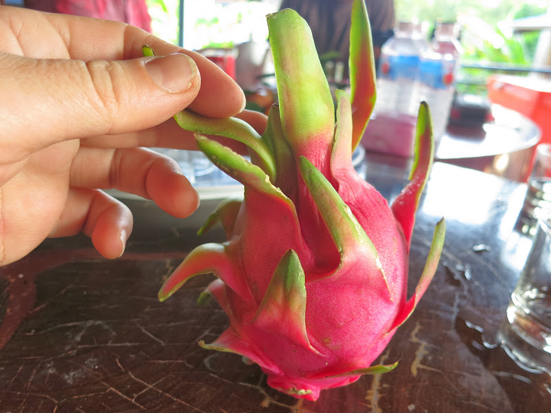 На десерт — питайя и арбуз. Питайя — забавный фрукт. Такая большая, с кулак, редиска с чешуйками, а под розовой кожурой — водянистая белая мякоть, набитая мелкими черными семечками, чуть крупнее мака. На вкус кисло-сладкая, не приторная. Говорят, питайя уже появилась в наших супермаркетах. В ресторане Пномпеньской гостиницы я увидела ее впервые.