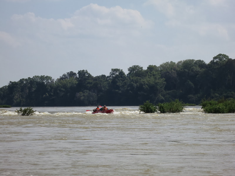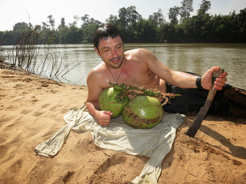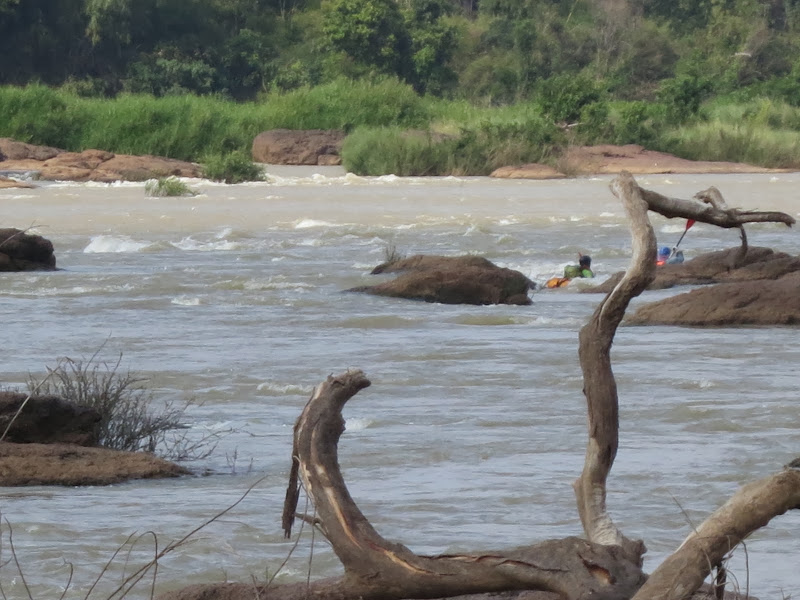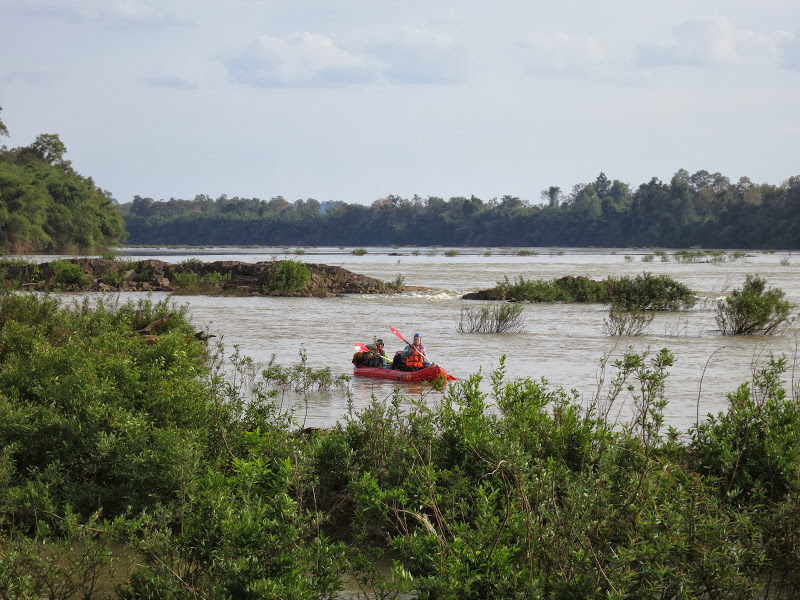Но самое главное, это мощные сбойки, поганки и воронки Меконга. Ступеньки, которые мы проходили на Срай Пок — это детский лепет по сравнению с мощными сливами Меконга, со сплавом среди воронок видимой глубиной до полутора метров и радиусом больше, чем длина лодки! К тому же начались грозы с ливнями, сильное похолодание. На Юго-Восточную Азию пришел циклон, во Вьетнаме в тот день выпал снег. Двести километров Меконга наши друзья пролетели за три дня, дрогнув под дождем и штормовым ветром лишь на последних тридцати, взяв-таки большую лодку с намерением дойти до Краче на более быстроходном и надежном судне, управляемом всё-таки профессионалом.