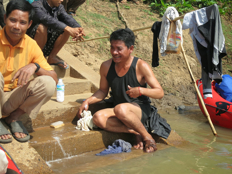 Как раз и время и ситуация подходящи для остановки движения — всех отпустило. Напряжение ожидания ж.пы спало. Пришло время поржать над собой, над ситуацией, да поругаться вволю. А на кого? На ни в чем не повинную разведку? На старого кхмера, учившегося в Москве, на рыбаков? Для их лодок это действительно препятствие. А ведь менты-то были правы — никакого водопада тут нет! Надо же, ссслуги народа! 🙂 А на лодках-то они и не плавают! Впервые на моем веку прикольная ситуация: наши понятия совпадают с их, причем отличаются от мнения большинства. Ой, это я уже о чем-то своем 🙂