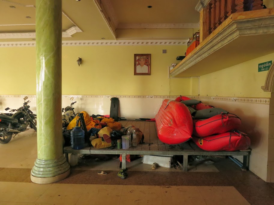 Кондиционеры в аэропортах исправно спасали, в лётном меню появился рис, а в багажном отделении самолёта Вьетнамских авиалиний, оформленная без перевеса (разрешенный багаж 30кг!), летела с нами в Камбоджу на вечное поселение красная надувная лодка фирмы «Триал-спорт». Вечное — потому что мы-то улетим, а лодка, пережидая паузы у камбоджийских друзей Олега, будет сплавлять по рекам Камбоджи потом и других подписавшихся на это «мокрое дело» людей.