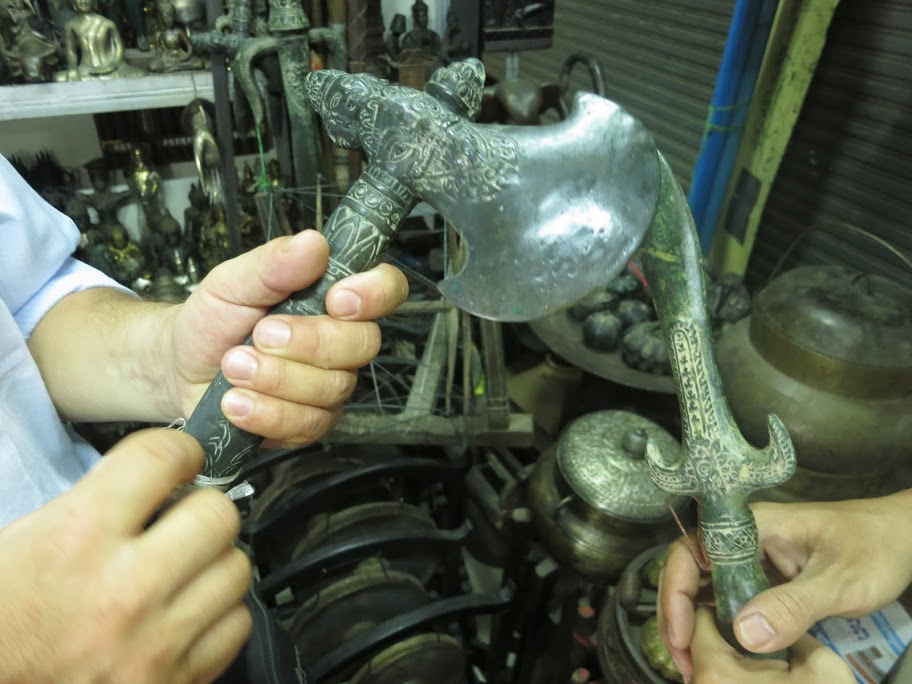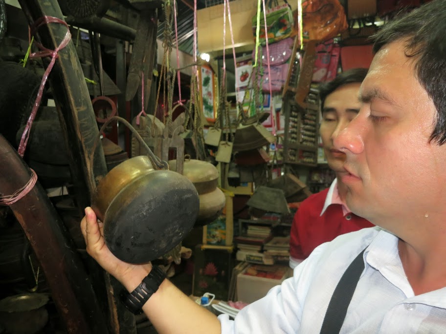 Из дальнейшего интересны только два момента: посещение нами в Пномпене так называемого Russian market, по сути базара, где есть настоящий блошиный рынок всякого любопытного старья — посуды, оружия, предметов быта, и где по наводке Олега мы познакомились с продавцом, симпатичным парнем, который говорит по-английски. Описывать всё увиденное не возьмусь.
