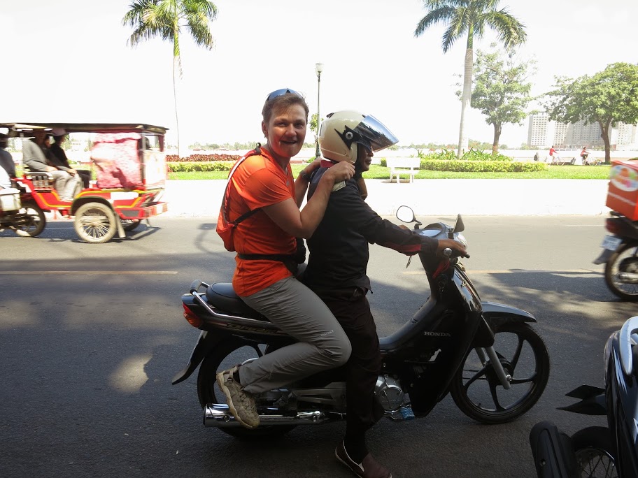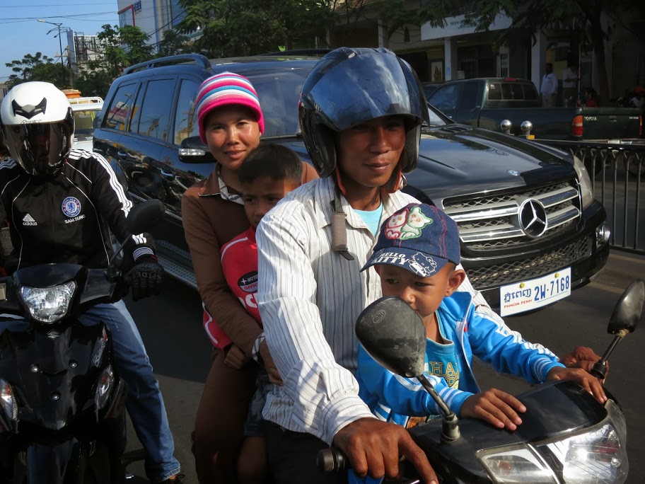 Нескончаемые мотоциклы на дорогах. Два, три, пять пассажиров на мотоцикле! Например, — двое взрослых и трое детей. Легко! Многие без шлемов, а без зеркал заднего вида почти все. Мотоцикл с тележкой для пассажиров и балдахином, называемый «тук-тук». Смуглые лица кхмеров. Не раскосые, не чисто азиатские, как у вьетнамцев и прочих азиатов. А широконосые, крупногубые, но с почти обычным разрезом черно-пречерных глаз. Волосы — про такие говорят, черны — как смоль. Многие кхмеры осветляются. И тогда волосы выглядят тёмно-рыжими. Это красиво. Бороды не растут. Совсем. Зато если тебе повезло и у тебя есть на лице родинка, а если из родинки ещё и растут волосы, то эти волосы отращиваются в длинный пучок, берегутся и охраняются. Это тоже красиво. А ещё специально для этого отрощенным длиннющщим ногтем на мизинце эти волосы накручиваются и теребятся. Это не просто красиво. Это шикарно.
