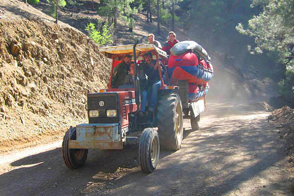После перелета Москва-Анталия и встречи с заранее зафрахтованным по Интернету и телефону автобусом поехали по прибрежному шоссе через город Манавгат (с посещением рынка и супермаркета) до Алании. Оттуда, проехав по той же дороге еще 10 километров, в поселке Махмутлар необходимо свернуть на асфальтовую дорогу к Бейрели. Наличие же самой этой дороги, существенно облегчает целый ряд задач. Во-первых, облегчает заброску на реку непосредственно к точке начала сплава без утомительной пешеходной заброски. Во-вторых, на достаточно большом участке является удобным подспорьем при проведении осмотров и обеспечения страховки, а так же фото- и видеосъемки.