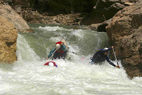 Вышли на воду в 09-30. Два порога II к. с. и два порога III к. с. — все сходу по основной струе, со взаимостраховкой,