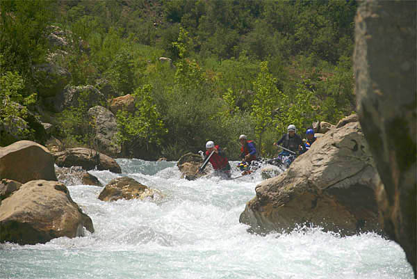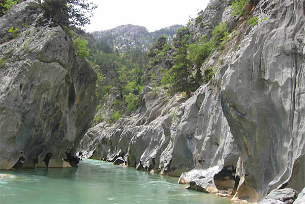 5 км каньон — 4 порожка III к.с. Не представляющих сложности. Осмотр и прохождение сходу. В середине каньона, на правом берегу здоровенная пещера (N36 34.020 Е32 42.357), вход виден с воды.