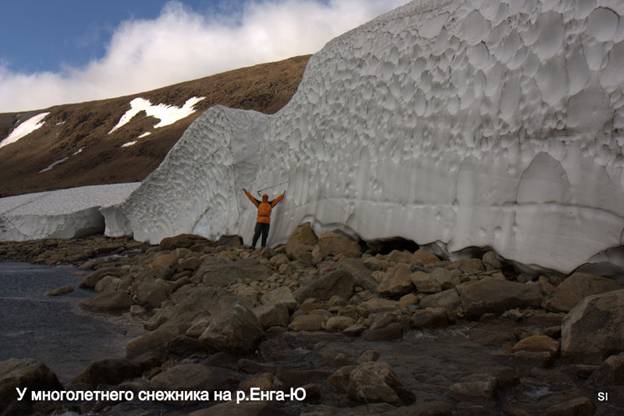 Налегке пошли делать фотосессию на ледник Топографов и к истокам Енга-Ю. Целый день фотосъёмки! Лёд, снег,цирки, скалы, троги, водопады, морены… На леднике Андрюха нашёл достойный трофей – советскую ложку из нержавейки. Обедали в защищённом от ветра месте,выглянуло солнце, даже припекло на несколько минут (сняли перчатки и капюшоны).