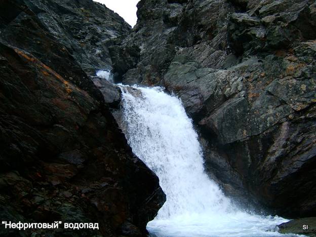 С утра пасмурно, Динозавр полностью закрыт. Решаем оставить близкое знакомство с ним на будущее, и идём на фотосессию «Нефритового» водопада в «Нефритовое» ущелье. Геологи говорили,что минерал на самом деле, называется серпентин.