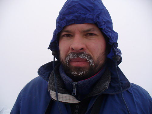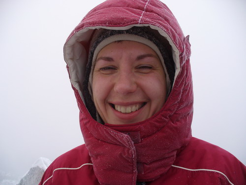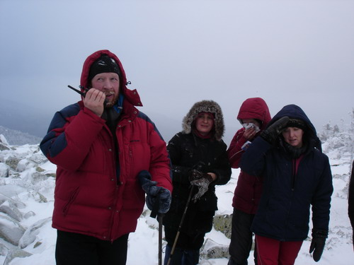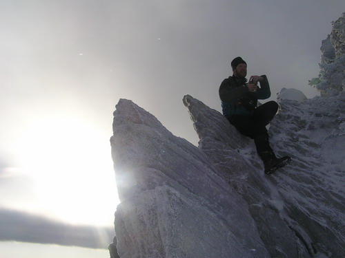 Подъём оказался не таким сложным, как я опасался. Рекомендую с собой иметь трекинговые палки. Серьёзно осложняет дело ветер, который готов унести нас в Канзас. На вершине видимость есть, но пейзажи получаются мрачноватыми, поэтому конкурс бикини решили отменить. Покончив с фотосессией, спускаемся вниз, соблюдая максимальную осторожность. О чудо, наши рюкзаки на месте, в ознаменование этого устраиваем пиршество. И вприпрыжку, тем же путём осуществляем спуск.