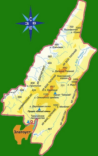 Златоуст — Нижняя тропа – Таганайская каменная речка – Водораздел – Приют Таганай – подножье горы Круглица — Приют Таганай.