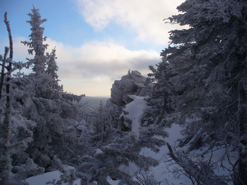 Сегодня она полностью соответствует своему названию. Лучшие декорации, хочешь к «Морозко», хочешь к «Двенадцать месяцев». Мы щёлкаем фотиками и карабкаемся на каждую сказочную каменюку. Дует сильный ветер, и тропу иногда переметает. Но путь найти легко, благодаря многочисленным меткам на деревьях и камнях. Большое спасибо людям их оставляющим.