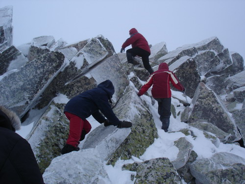 Опять чертовски дует, и мы спускаемся. На вторую вершинку решили не ходить, пообещав себе пробежку на Три Брата. Спускаемся к кордону, где получаем приглашение на чай от остановившихся там челябинских ребят. С радостью принимаем предложение: всё равно хотели устроить перекус на Стрелке. Условия проживания там существенно лучше: просторно, светло, каменная печка, каждый день баня. Минус один — очень далеко идти. У ребят помимо чая оказался замечательный напиток на основе спирта, лимона и воды. Мы втайне рады, что не остановились на Киалиме: этот комфорт уничтожил бы и самых матерых экстремалов. Совершив над собой страшное и нечеловеческое усилие, мы выдвигаемся к стрелке. В группе наблюдается демократия с анархическим уклоном и сепаратискими настроениями: часть команды возвращается на приют, те, кого не пугает марш-бросок в темноте, отправляются к Трём братьям.