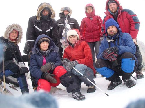 Вечером после ужина в наше бунгало забрела местная знаменитость. Она представилась – тётя Валя, которая строит иглу. Как позже выяснилось, благодаря аттракциону с иглу, она не платит за своё проживание на приюте. Тётя Валя – туристический кинооператор и легендарная фигура. Обо всём этом она написала в книге «Чёрно-белые следы» (автор- Валентина Прокофьева), которую тут же нам радостно впарила. К книге прилагается DVD-диск. За всё это счастье да еще и с авторской монограммой четырехсот рублей совсем не жалко, да и материал, как впоследствии выяснилось, превосходный.